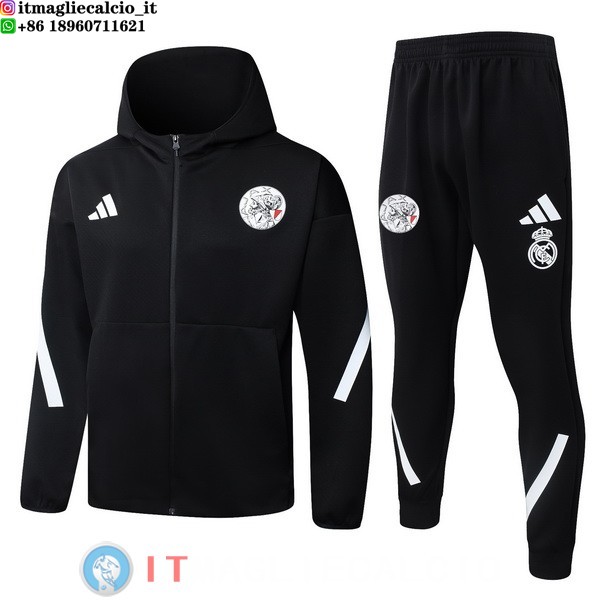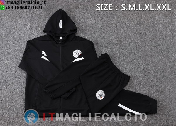 Giacca con Cappuccio e Zip Completa e Pantaloni Ajax 2025/2026 Nero Bianco
