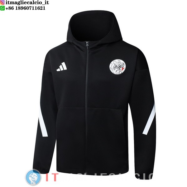 Giacca Con Cappuccio Full Zip Ajax 2025/2026 Nero Bianco