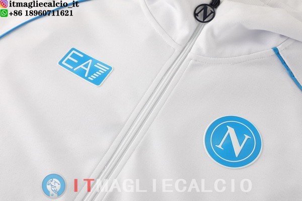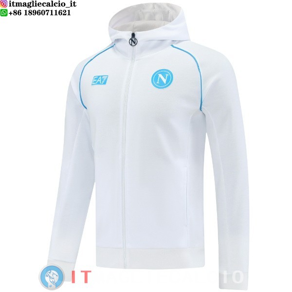 Giacca Con Cappuccio Full Zip Napoli 2025/2026 Bianco Blu