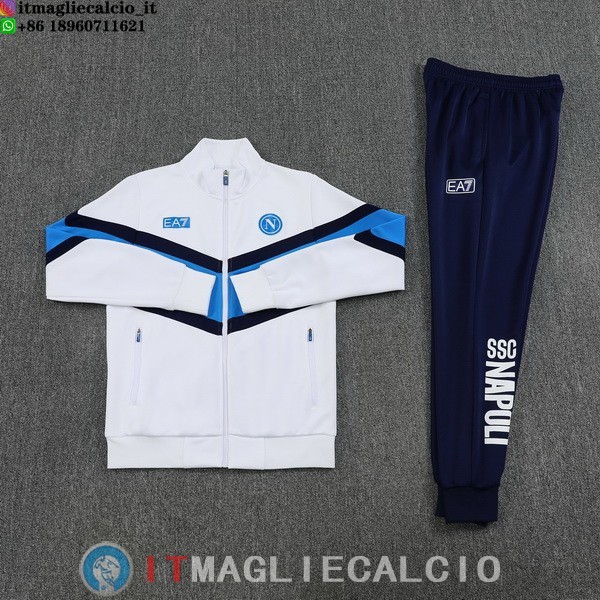 Giacca Full Zip e Pantaloni Allenamento Napoli 2025/2026 Bianco III Blu