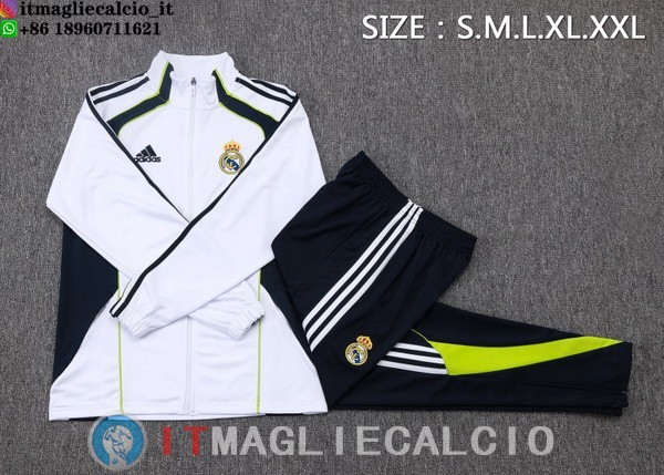 Giacca Lunga Zip Set Completo Real Madrid 25-26 Bianco Nero Verde