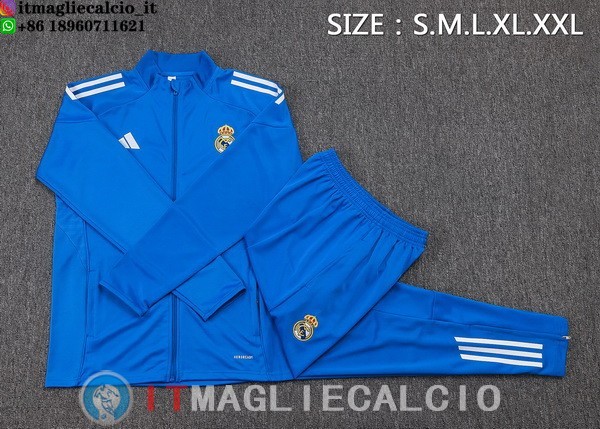 Giacca Lunga Zip Set Completo Real Madrid 25-26 Blu Bianco