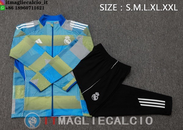 Giacca Lunga Zip Set Completo Real Madrid 25-26 Blu Giallo Nero