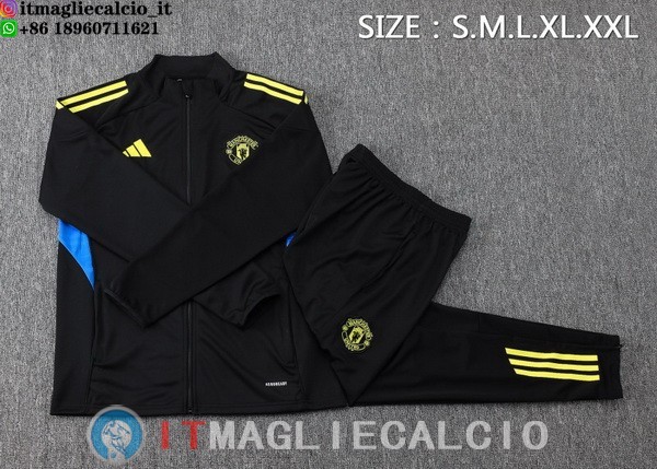 Giacca Set Completo Lunga Zip Manchester united 25-26 Nero Giallo Blu