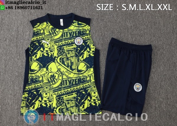 • Senza Maniche Set Completo Maglia Manchester city 2024/2025 Blu Navy Verde