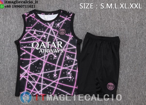 Senza Maniche Set Completo Maglia Paris Saint Germain 2025/2026 Nero Rosa