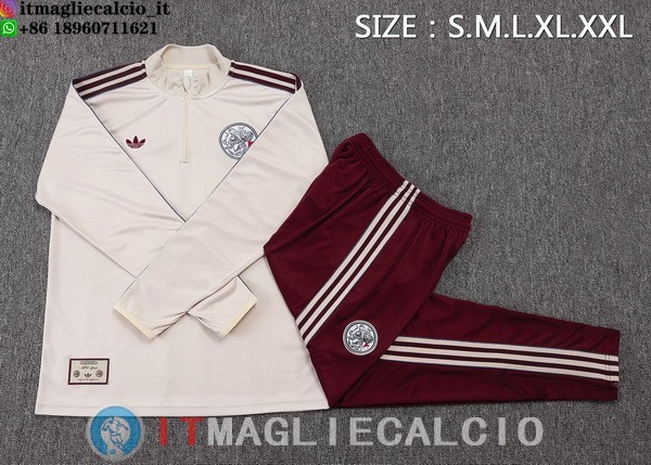 Tuta da Allenamento Bambino Ajax Mezza Cerniera 2025/2026 Bianco Giallo Rosso
